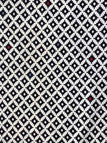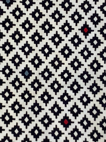 8042: 1930s-50s Japanese Cotton Fabric, 57in. Geometric Diagonal Grid, Black-White,AraiHari