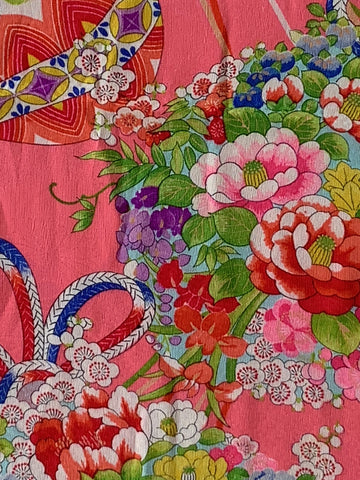 8050: 1930s-50s Japanese Kimono Silk Fabric Piece 57", Ornate, Floral Arai-Hari