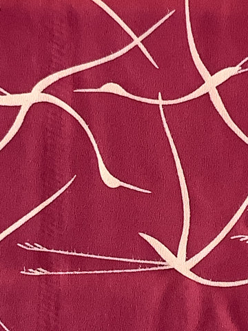 8073: 1980s Japanese Kimono Silk Fabric Piece 43",Flying Cranes, Arai-Hari