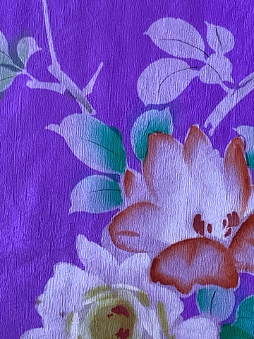 8083: 1930s-1950 Japanese Kimono Chirimen Silk Fabric Piece 58" Dove, Peonies AraiHari