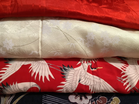 We have been selling our most popular "A Package" women's kimonos by-pound online since 1998. In the process of procuring our supplies in Japan, we also come across kimonos that are not up to our standards for the A Package, but, while not suitable for wear, we felt surely they can be used by textile artists, quilters, fashion designers, and other textile artisans in their creative projects.