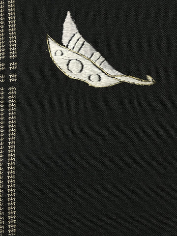 8009: 1980s Deadstock Ohshima Tsumugi Silk,Black Vertical Stripes, Embroid Leaves 62in.